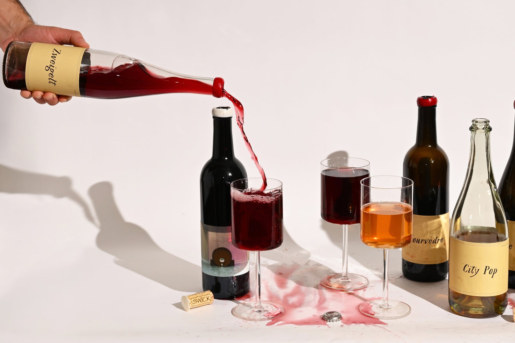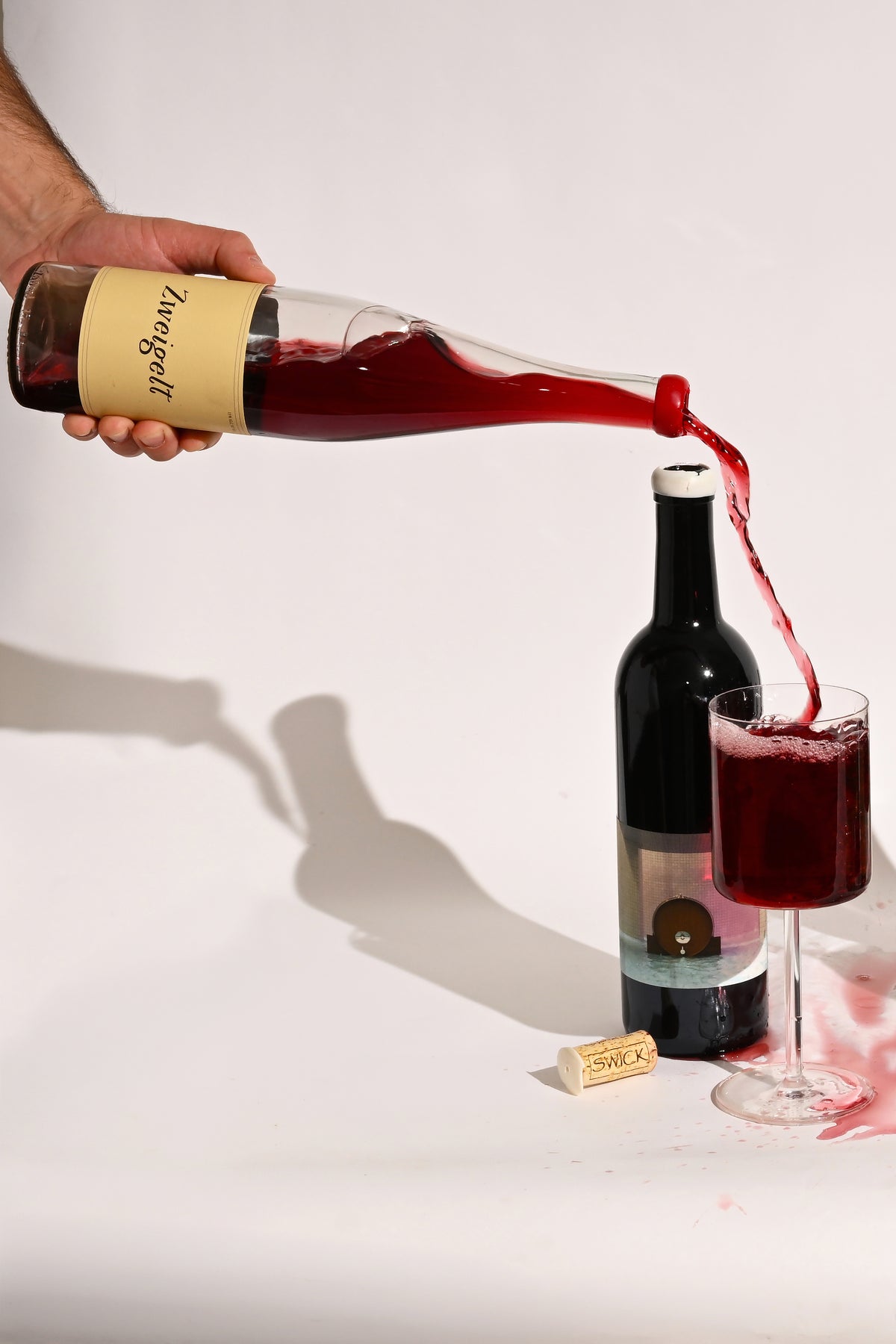 Whole cluster, foot-stomped, 45 days on skins. Spicy pepper and dark cherry on the nose, firm tannin, bright acid, and enough structure to age if you can keep your hands off it. 25 cases total. Roast chicken, duck with cherry sauce, or anything that wants a little spice next to it.